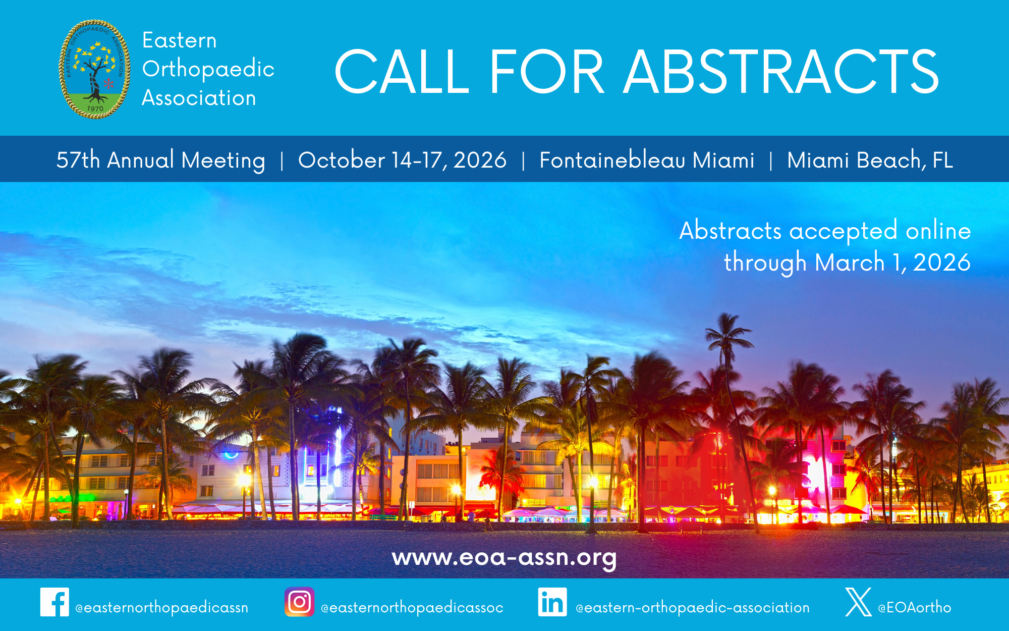 It is my distinct privilege to serve as the 57th President of the Eastern Orthopaedic Association (EOA). Since its founding in 1970, the EOA has stood as a premier forum where orthopaedic surgeons, trainees and industry come together to share knowledge, foster collegiality, and engage in meaningful professional development, all within settings that also provide memorable and enjoyable experiences for our families.